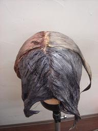 わかりやすいように、ウィッグをまん中から右と左にわけて、右側だけにM3をたっぷりつけてラップをします。