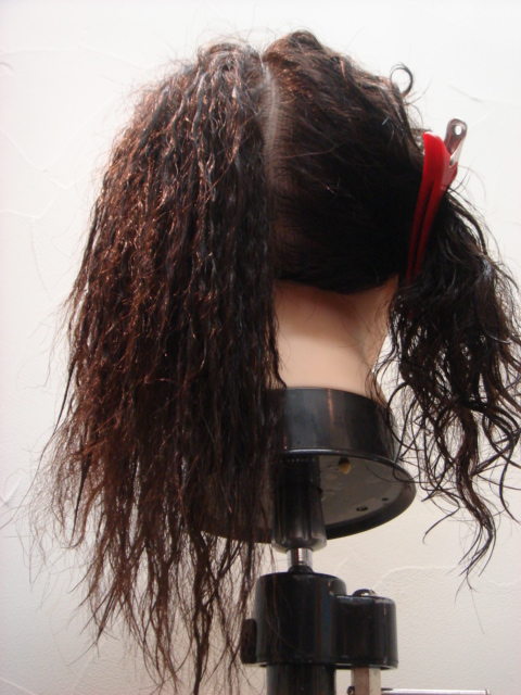 なんですが、こうやって特殊系根元からなパーマのときは、手のひらにつけたスタイリング剤を根元にはつけないように、シャンプーするかのように、…ん~昔でいうと、ナハナハ(笑)?
