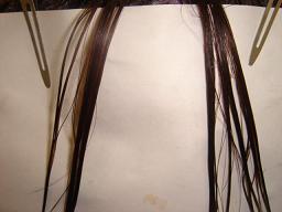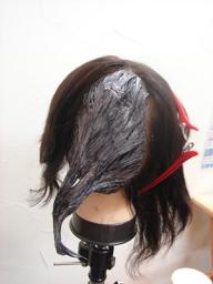わかりやすいように、ウィッグをまん中から右と左にわけて、右側だけにM3をたっぷりつけてラップをします。